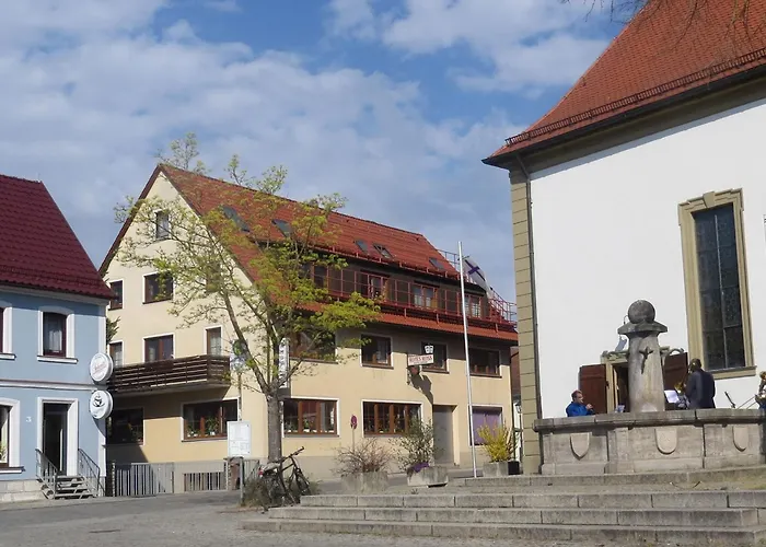 Rathaus ist innerhalb von ungefähr 10 Autominuten und Dreifrankenstein innerhalb von ungefähr 10 Autominuten vom Hotel aus zu Fuß erreichbar. Die Gäste können die Stadt Bad Windsheim besuchen, die 65 km vom Hotel entfernt ist. Stadttor ist in circa 3 km Entfernung von der Unterkunft. Die nächstgelegene Bushaltestelle Marktplatz ist 5 Fußminuten entfernt. Man braucht 47 Autominuten, um das Hotel Gasthof-Metzgerei Rotes Ross vom Flughafen Nürnberg aus zu erreichen.